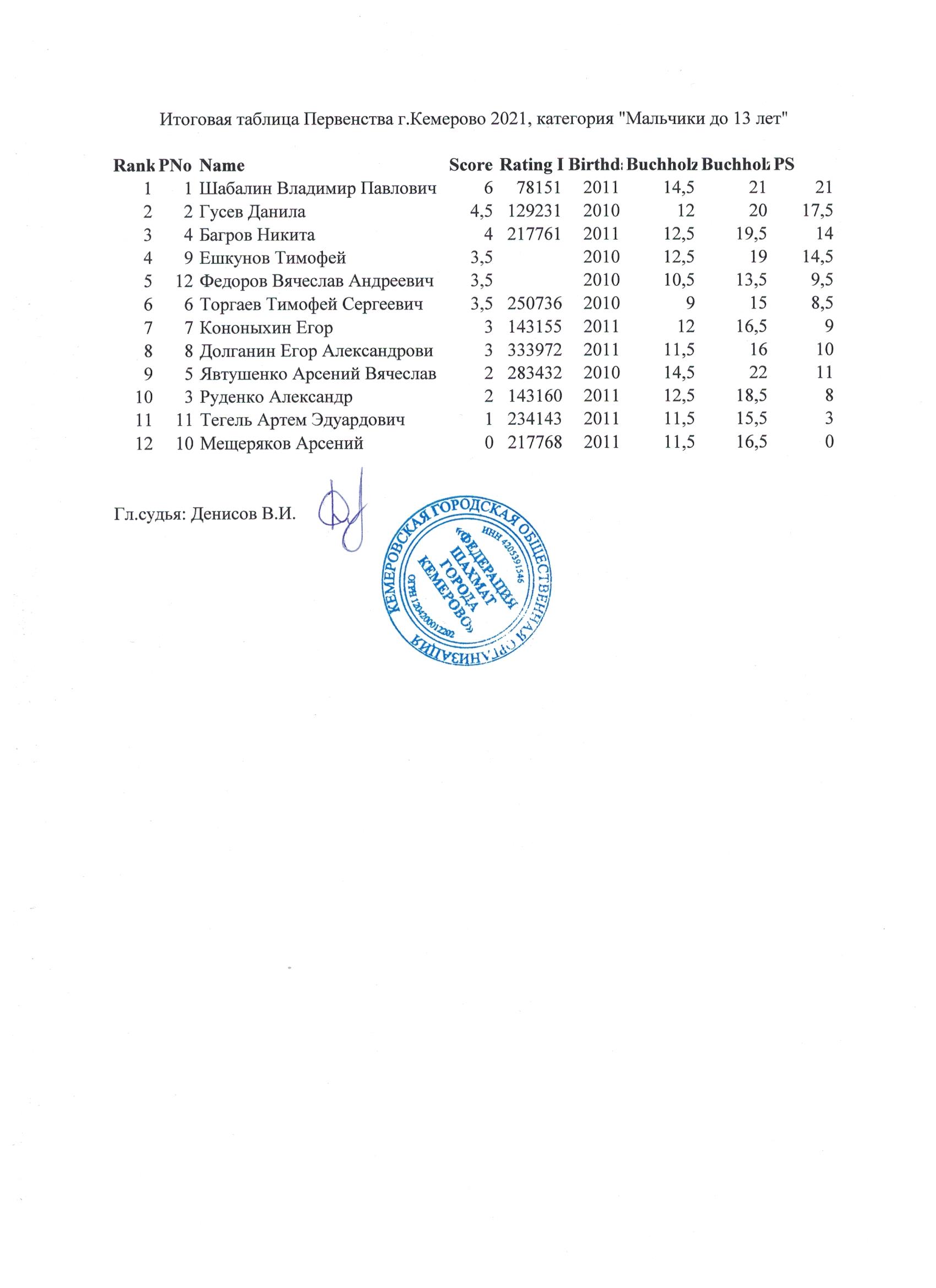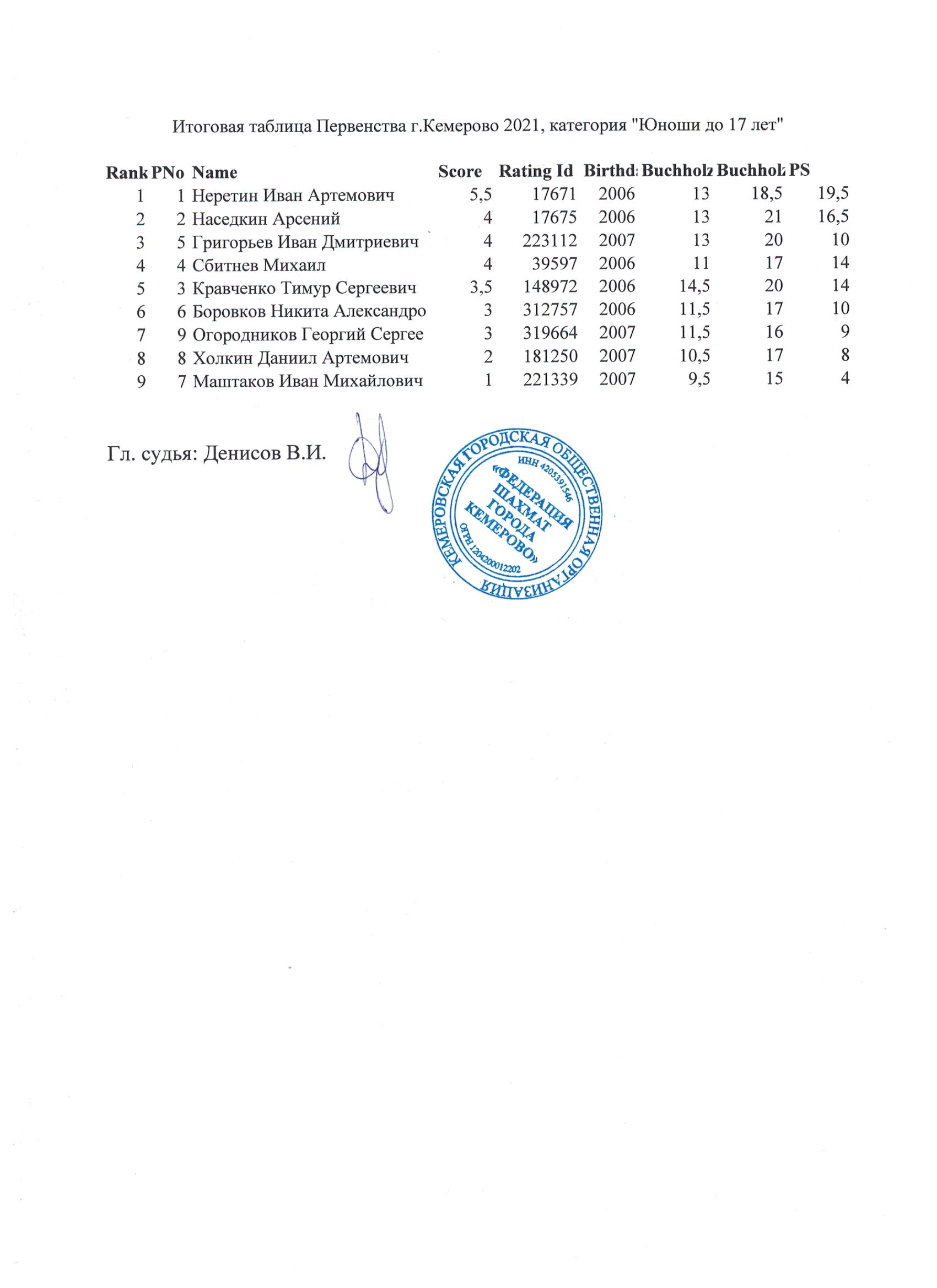 Успехов в первенстве Кузбасса! Итоги: Д11, Д13, Д15, Д17, Д19, М11, М13, Ю15, Ю17, Ю19.